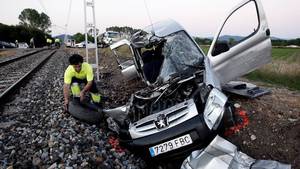 A las diez y media de la noche una grúa levantaba los restos de la furgoneta. La vía estuvo cerrada al tráfico de trenes durante una hora y cuarenta minutos. El suceso obligó a detener durante ese tiempo dos convoyes de pasajeros.