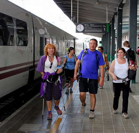 No todo el pasaje, desde luego, se alistó a caminar tras la flecha amarilla. Una parte hace turismo de forma más relajada. Cuando el tren arriba a la ciudad, los peregrinos son trasladados en autobús al punto de partida de la etapa que toca -la de ayer fue Triacastela-Sarria- y el resto dispone de la mañana para visitar la ciudad o hacer lo que le plazca. Lo que es seguro es que el tren, un talgo con veinte coches, seguirá estacionado y abierto como si fuera un hotel rodante que, al fin y al cabo, esa es la idea.