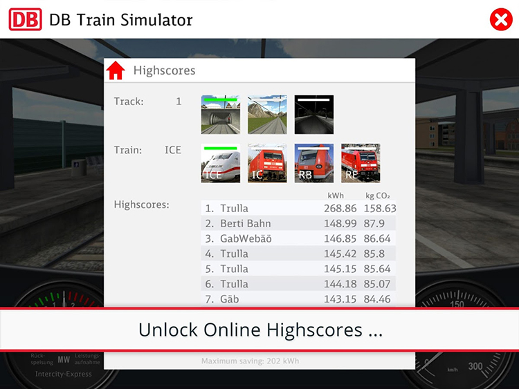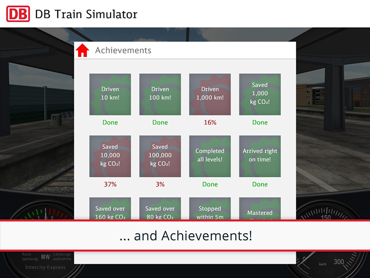 "Train Simulator" es la aplicación gratuita con la que DB quiere concienciar sobre el ahorro energético a través de la conducción eficiente. El reto para el jugador es conseguir reducir al máximo el consumo de energía y convertirse en un protector del clima. La aplicación está basada en datos reales de conducción de trenes.