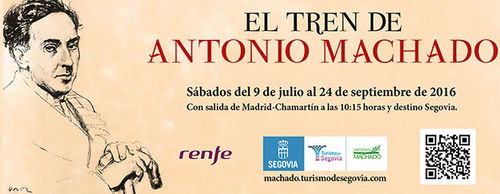El pasado sábado, 9 de julio, comenzó la temporada del Tren de Antonio Machado, una iniciativa de Renfe, el Ayuntamiento de Segovia y la Empresa Municipal de Turismo de la ciudad castelllana puesta en marcha en el marco del acuerdo de colaboración suscrito entre las tres entidades para la promoción turística de la ciudad y el fomento del uso del tren. El Tren de Antonio Machado circulará todos los sábados hasta el 24 de septiembre entre Madrid y la capital segoviana.