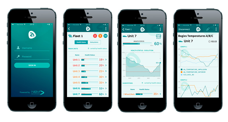 La aplicación que forma parte de la plataforma Aura y cuenta con la misma tecnología inteligente y algoritmos desarrollados por Nem Solutions, permite un acceso sencillo en cualquier lugar a la información de los activos. Con ella se puede observar el estado global de cada subsistema, identificando rápidamente los que requieren atención y sin necesidad de desplegar el navegador para obtener la información relevante.