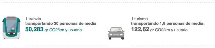 La aplicación expone cómo contribuye el Tram a luchar contra el cambio climático contaminando menos, ahorrando energía, mejorando la circulación y ofreciendo un desplazamiento más seguro, además de significar un ahorro de dinero para los usuarios. La web del Tram muestra datos que constatan cada una de las afirmaciones anteriores. Por ejemplo, en el caso de las emisiones de dióxido de carbono, el principal gas contaminante causante del cambio climático.