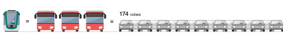 Respecto a la contribución del Tram a la mejora de la circulación, los datos son evidentes: Un tranvía puede trasladar más de doscientos pasajeros, el equivalente a tres autobuses estándar o a 174 vehículos privados.