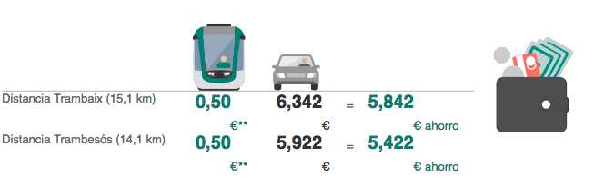 En el caso de otro ejemplo sobre las ventajas que ofrece el uso del tranvía respecto al vehículo privado, se puede destacar el ahorro para el usuario, ya que el uso del tranvía para los desplazamientos es sensiblemente inferior a los costes de circular y mantener un vehículo privado.