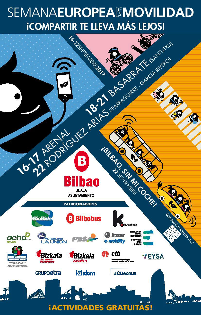 El ayuntamiento de Bilbao, en colaboración con otras instituciones públicas y empresas privadas, ha elaborado un plan de actuaciones para la celebración de la Semana Europea de la Movilidad 2017 que se celebrará entre el quince y el 22 de septiembre bajo el lema: “Compartir te lleva más lejos”.