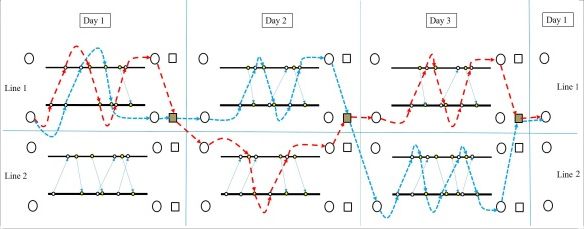 Puesto que al término de los servicios diarios los trenes deben moverse al depósito donde pernoctan, tratar por separado el movimiento de los trenes y la localización de los depósitos conlleva en muchos casos viajes improductivos en vacío.