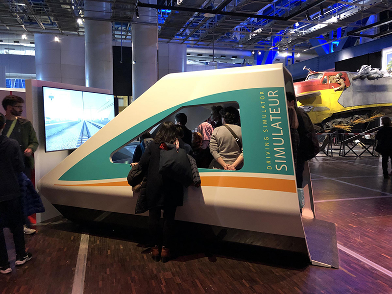 Además, a los contenidos técnicos y científicos, se suman tres instalaciones artísticas sobre la alta velocidad, el montaje escultórico "La motrice en avant-première", una proyección en tres dimensiones y la obra "Cosmos Express".