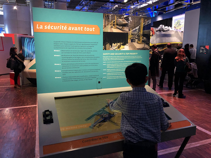 Para responder a esas preguntas, se proponen al visitante juegos y experimentos y pantallas interactivas. Un “bar interactivo” ofrece la posibilidad de visualizar todas las líneas de alta velocidad del mundo y comprender el concepto y los retos de la interoperabilidad. Maquetas de trenes significativos en la historia de la alta velocidad, como los que han obtenido récords, se unen a sets con experimentos para entender la adherencia rueda-carril, la fuerza centrífuga en las curvas o la importancia del aerodinamismo, y a un simulador de conducción.