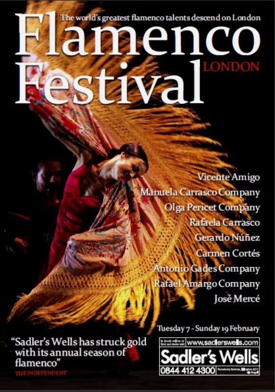 Los teatros Sadler's Wells (uno de los hogares de la danza en Londres) y Lilian Baylis Theater acogerán los distintos espectáculos que presenta el festival, dirigido por Miguel Marín. El guitarrista cordobés Vicente Amigo inaugurará mañana el certamen con «Paseo de gracia». Le seguirán Manuela Carrasco y su «Suspiro flamenco» (días 8 y 9), la compañía de Olga Pericet con su espectáculo «Rosas, metal y ceniza» (día 10), la Gala Flamenca, que incluye a Carmen Cortés, Rafaela Carrasco y Olga Pericet (días 11 y 12); el guitarrista Gerardo Núñez y la bailaora Carmen Cortés, con «Travesía» (día 13); «Fuenteovejuna», de la Compañía Antonio Gades (día 14); Rafael Amargo y su «Poeta en Nueva York» (días 17 y 18); el cantaor José Mercé (día 19) y «Supercop», de La Shica (día 18).