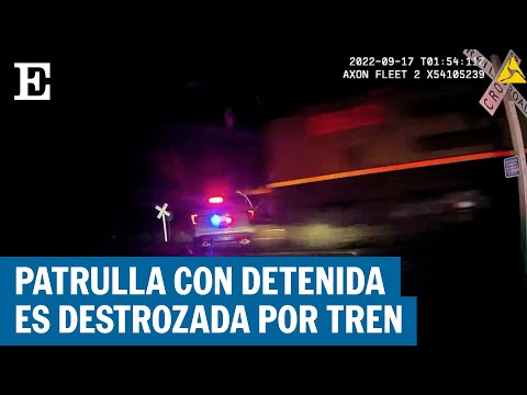 EL MOMENTO QUE UN TREN ARROLLA A UNA PATRULLA CON UNA PERSONA DENTRO