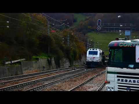 RENFE 333 CON TREN DE PLATAFORMAS CAMPOMAMES