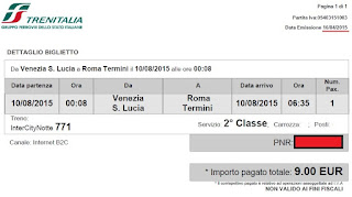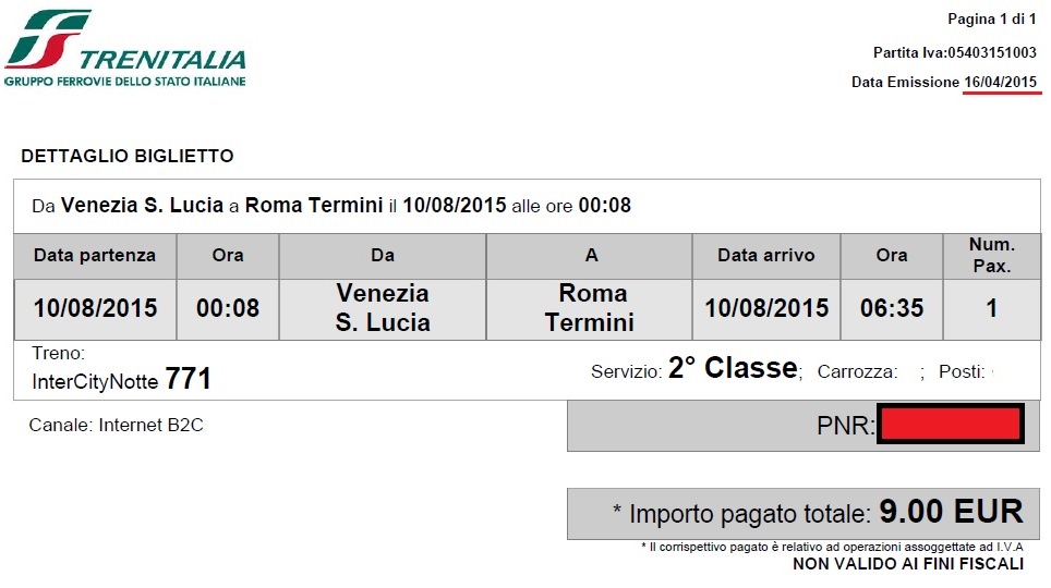 Billete de Larga Distancia en tren nocturno de Italia, a 9 €, comprado con 4 meses de antelación, transacción imposible de hacer en España