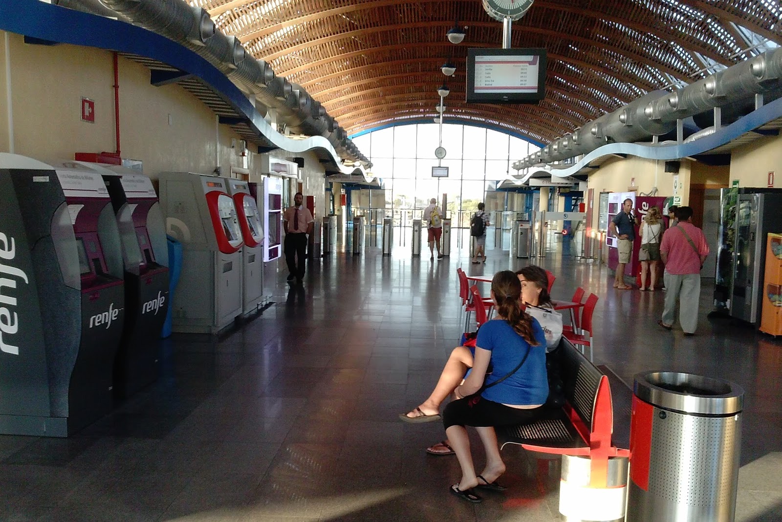 Espectacular y costoso despliegue de máquinas autoventa en una estación española (San Fernando-Bahía Sur) con un tráfico de más de 80 trenes diarios (Cercanías, Media Distancia y Larga Distancia). Hay 2 máquinas para Larga Distancia, 5 para Cercanías, y dos canceladoras de abonos. Sin embargo, las de Larga Distancia no expiden billetes combinados, y ninguna de todas esas máquinas venden billetes de Media Distancia, que son los más demandados en la estación. Por si no fuera suficiente, los viajeros que vengan con el billete de internet impreso en casa o en el móvil, no pueden franquear las canceladoras situadas al fondo por lo que han de hacer cola en ventanilla para que les den un cartón y traspasarlas