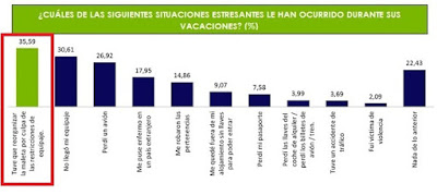 La Encuesta preguntó a los viajeros por las situaciones estresantes que le ocurrieron durante sus vacaciones y la primera respuesta en porcentaje es la que se refiere a las restricciones de peso de equipaje en los vuelos. Esto no ocurre en los trenes pues, aunque hay ciertas normas sobre pesos y tamaños, existen viajeros que para unas cortas vacaciones parece que se llevan al tren la casa entera, por el tamaño y el peso de las maletas que portan.