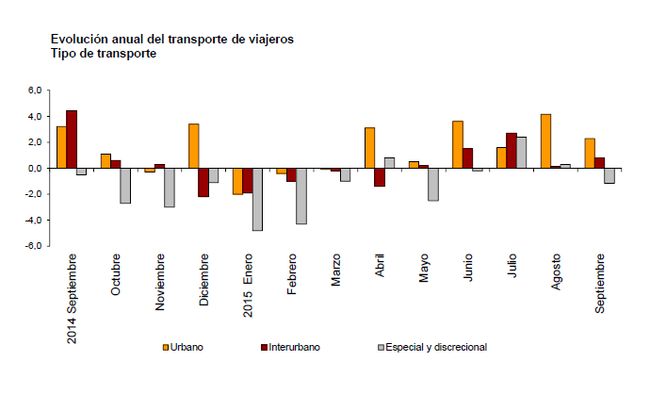 El transporte urbano fue utilizado por más de 230,3 millones de viajeros en septiembre, un 2,3 por ciento más que en el mismo mes de 2014.