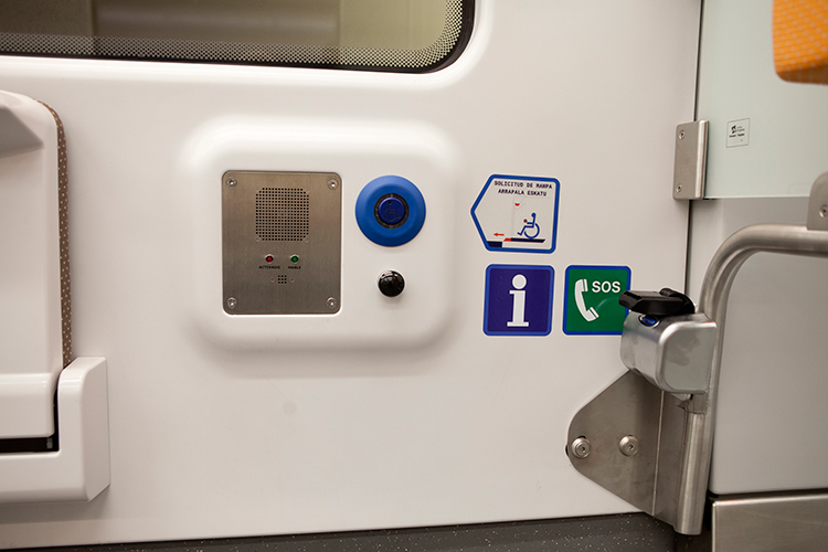 Los coches extremos cuentan, cada uno de ellos, con una cabina de conducción, dotada de un puesto para conducción y de una puerta de evacuación frontal, con escalera incorporada. El coche intermedio dispone de zonas para sillas de ruedas y rampas automáticas en dos de sus puertas. Los trenes tienen puertas de evacuación de emergencia laterales y frontales, en función del coche de que se trate.