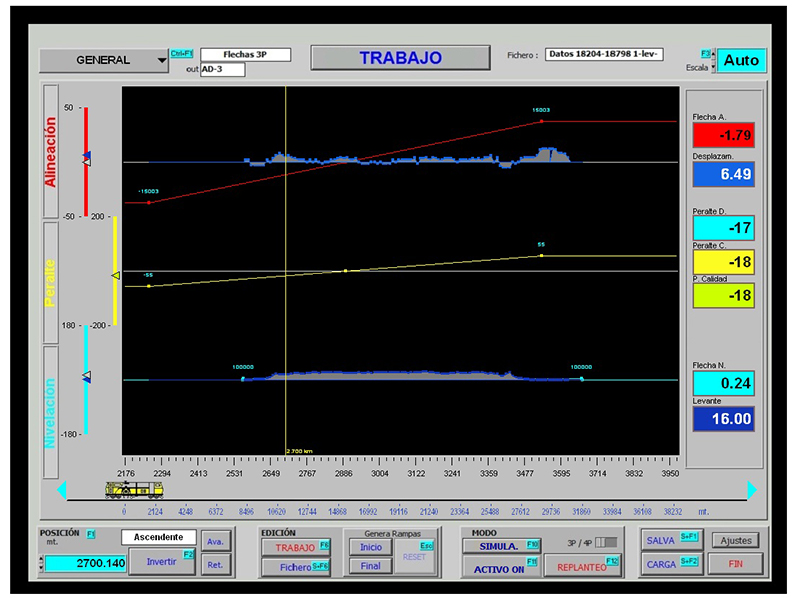 Igualmente, el puesto de conducción ha respetado todos los mandos principales para la circulación. Para el proyecto se ha modelado un tramo real de vía, así como hojas de trabajo reales que se proporcionan a los operadores.