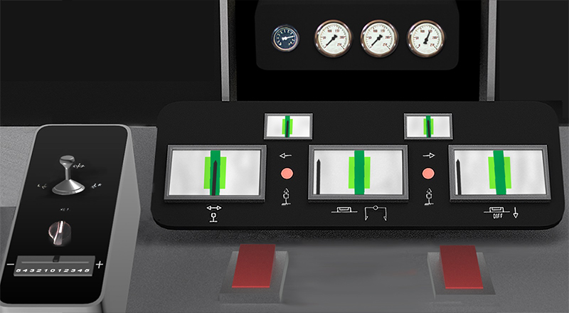 El manejo del simulador es sencillo e intuitivo. Cada puesto de simulación incluye una interfaz visual para interactuar con los mandos locales de la máquina, así como una pantalla desde la que se contempla la vía con la perspectiva correspondiente. En el puesto de bateo, el simulador incluye los pedales reales con los que se realiza el movimiento de los bates.