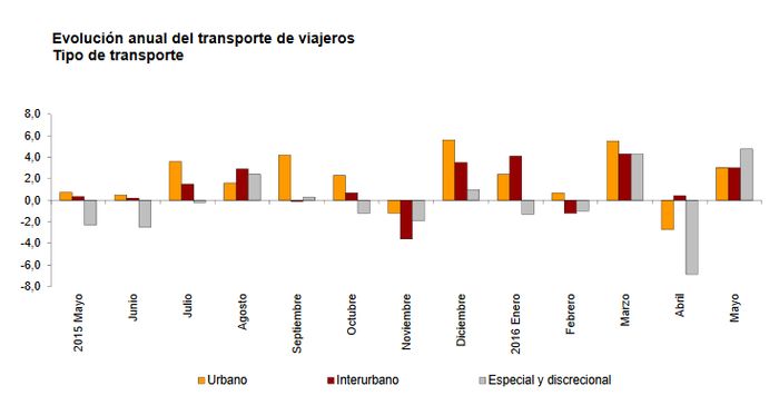 El transporte urbano fue utilizado por más de 253,8 millones de viajeros en mayo, un 3 por ciento más que en el mismo mes del año 2015.