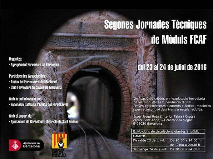 Como cierre de las Segundas Jornadas Técnicas de Módulos FCAF ,este próximo fin de semana, se van a desarrollar unas jornadas de exhibición, donde se podrán ver las últimas propuestas en la mejora de la gestión y explotación de los módulos ferroviarios a escala H0 en funcionamiento digital, en el Espacio Josep Bota de Barcelona.