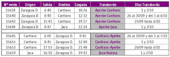 En este intervalo, Renfe ha diseñado el siguiente servicio alternativo por carretera entre las estaciones de Santa María y La Peña y Sabiñánigo para garantizar la movilidad de los viajeros: