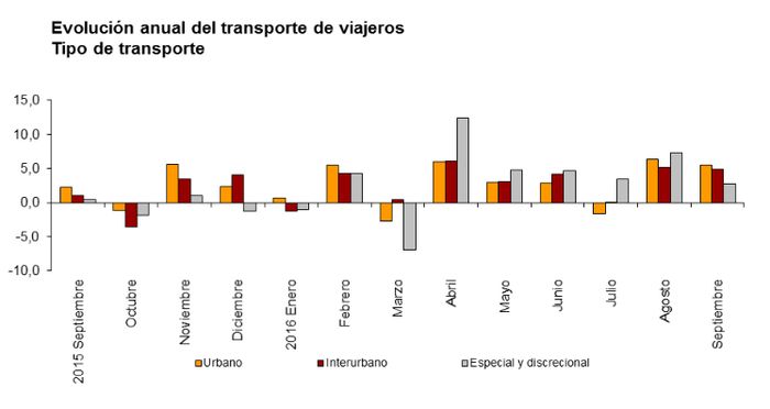 El transporte urbano fue utilizado por más de 242,7 millones de viajeros en septiembre, un 5,5 por ciento más que en el mismo mes del año 2015.
