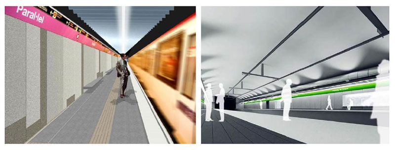 Diseños propuestos para las estaciones de Paral·lel y Passeig de GràciaPasseig de Gracia