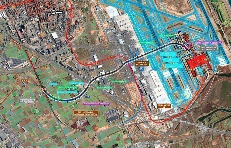 En la zona de la futura estación multimodal, se han desviado los servicios existentes en el aparcamiento de la terminal T2 y el entorno de la actual estación de Cercanías, tales como agua, contraincendios, riego, telecomunicaciones, alumbrado, saneamiento y líneas eléctricas de baja y media tensión. En este sector, también se ha iniciado la construcción de las pantallas, con 3.000 metros cuadrados ejecutados, y las inyecciones de jet grouting, con 5.000 metrso cúbicos de terreno tratados.