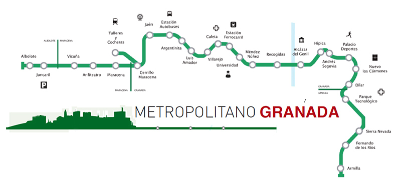 El tren en pruebas recorrió ayer los principales puntos de interés y equipamientos situados en la traza, como el polígono Juncaril, la estación de autobuses interurbana, la estación de ferrocarril, donde se produce el principal punto intermodal, así como los hospitales de La Caleta y del Parque Tecnológico, la Universidad y otros equipamientos administrativos y centros comerciales.