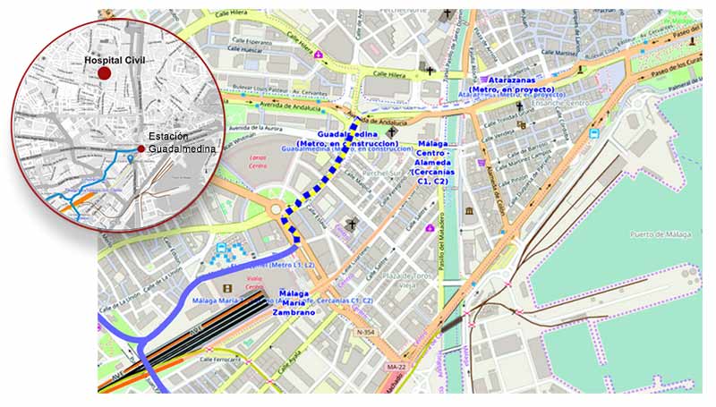 El trayecto Guadalmedina-Hospital Civil se interna en el distrito Bailén-Miraflores, en la zona norte de la capital, que constituye la cuarta área más poblada y aportará a la red de metro más de 2,5 millones de viajeros al año, que se sumarán a los dieciocho estimados para el resto de la red. Con un trazado de 1,8 kilómetros -un tercio soterrado y dos en superficie- contará con cuatro paradas y el plazo previsto para la ejecución de las obras es de veinticuatro meses.