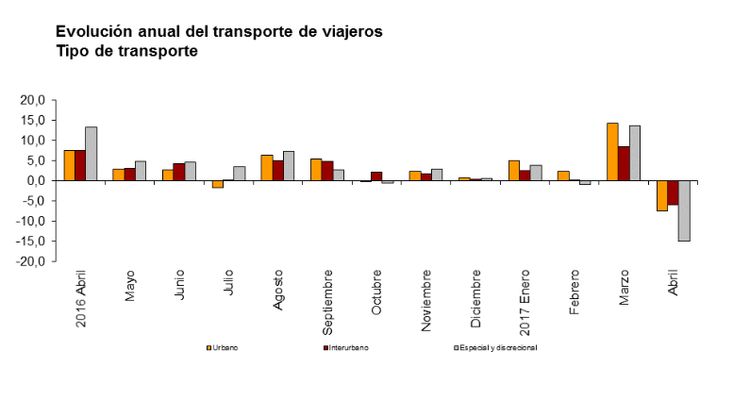 Los datos provisionales publicados por el Instituto Nacional de Estadística revelan que el número de viajeros del transporte público registró un descenso del 7,9 por ciento en abril respecto al mismo mes de 2016. También disminuyó el número global de viajeros por ferrocarril un 4,9 por ciento, si bien la demanda de los trenes de larga distancia aumentó un 10,2 por ciento y la de los de media distancia lo hizo en un porcentaje del 4,9.