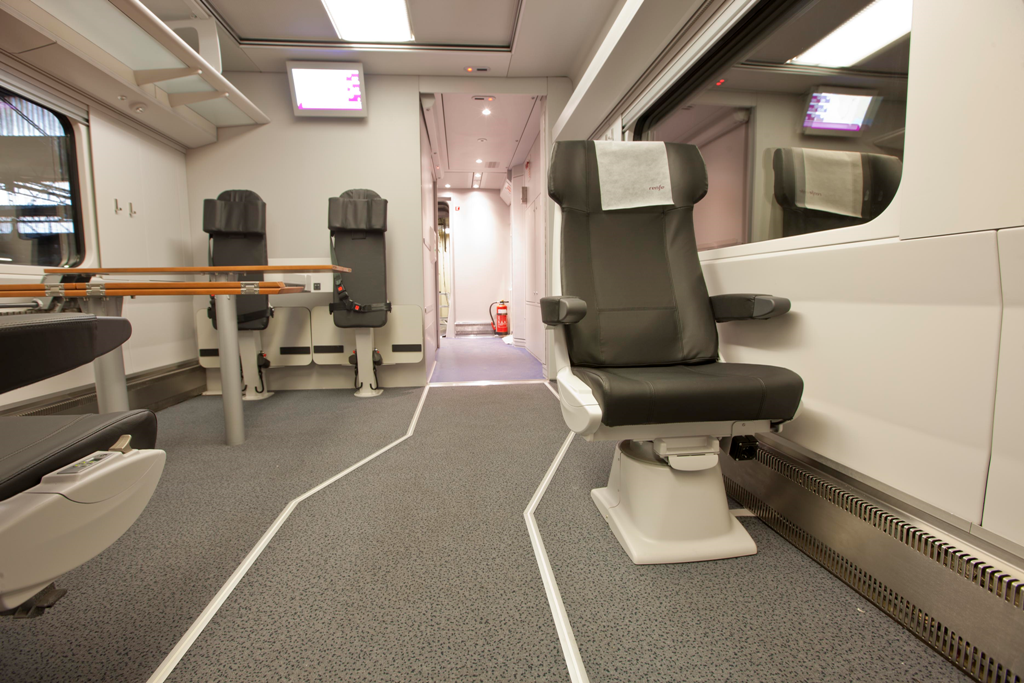 El nuevo coche accesible está concebido para el uso prioritario de personas que viajan en silla de ruedas eléctrica. Cuenta con dos plazas H, asientos específicos que permiten a estos clientes anclar su silla y viajar de forma independiente. Disponen de cinturones de seguridad, apoyos dorsales y cervicales, sistema antivuelco y mesa regulable en altura, entre otros elementos. Asimismo, cuenta con un interfono que permite contactar con el personal de a bordo.