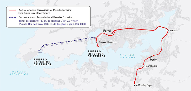 El pasado lunes arrancaron las obras del acceso ferroviario al puerto exterior de Ferrol, en un acto presidido por el ministro de Fomento, Íñigo de la Serna, en el que se procedió a la perforación del túnel de Brión para comenzar la ejecución de la nueva infraestructura. Se trata de la actuación ferroviaria de mayor envergadura llevada a cabo por una Autoridad Portuaria, tanto desde el punto de vista de su presupuesto como por su complejidad técnica.