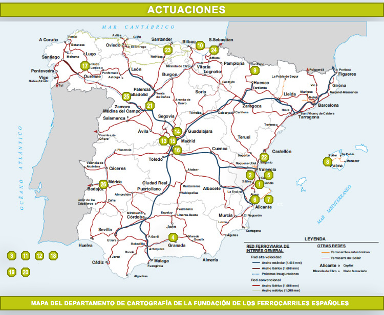 Últimas actuaciones de los organismos públicos en materia de infraestructuras ferroviarias, desde los estudios previos de viabilidad, informativos y de variantes de trazado a todo el proceso de información pública, autorización de obra o adjudicación. (Consultar definición de términos).