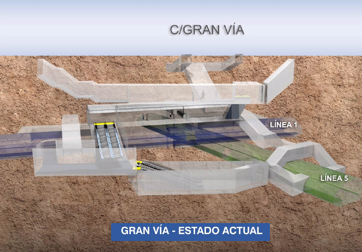 Las obras se harán en paralelo a las de mejora de la accesibilidad en la estación de Gran Vía, que elevarán la inversión hasta los dieciocho millones de euros que completarán las nueve escaleras mecánicas actuales con otros seis tramos más y cuatro nuevos ascensores que conectarán el vestíbulo con los distintos andenes de las líneas 1 y 5, con el pasillo de conexión con Cercanías y con la calle.