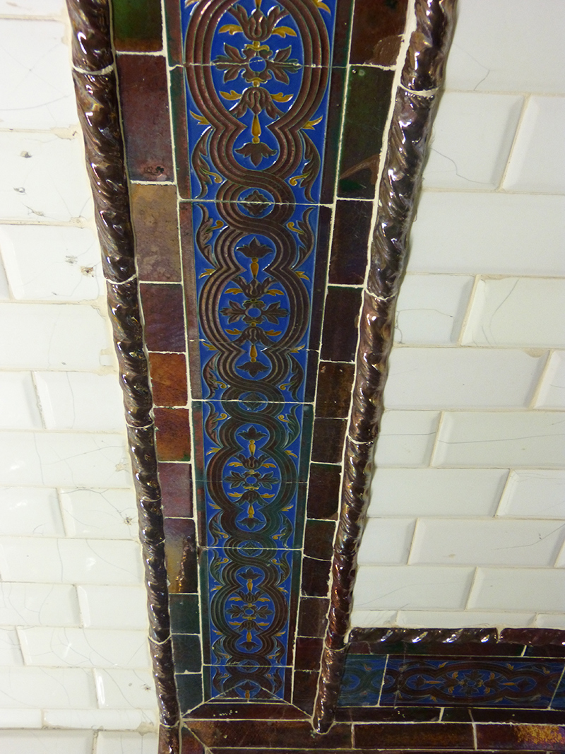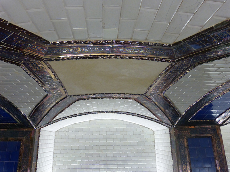 Decorado en estilo neomudéjar, está recubierto por azulejos blancos biselados y contaba con tres claraboyas en el techo para que entrase luz natural, de las que se pueden observar restos.