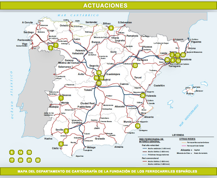Últimas actuaciones de los organismos públicos en materia de infraestructuras ferroviarias, desde los estudios previos de viabilidad, informativos y de variantes de trazado a todo el proceso de información pública, autorización de obra o adjudicación. (Consultar definición de términos).