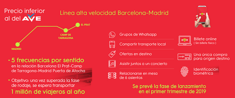 EVA, que se fija como objetivo competir, fundamentalmente, con el automóvil, deberá servir para probar nuevos sistemas y estrategias en una línea, la Madrid-Barcelona, que ofrece las características más adecuadas para hacerlo de modo que en el futuro puedan extenderse a otros corredores y otros productos de Renfe.