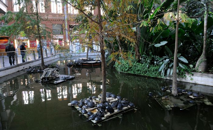 Durante la noche del pasado lunes, Adif trasladó a las tortugas del estanque de la estación de Madrid Puerta de Atocha al Centro de Fauna “José Peña” de Navas del Rey, tras el acuerdo firmado hace unos meses con el Ayuntamiento de dicha localidad madrileña. Tras el traslado, se han iniciado las obras de supresión y posterior pavimentado del estanque que las albergaba, de 128 metros cuadrados, donde se creará un espacio destinado al desarrollo de acciones no comerciales de educación ambiental, sensibilización social y difusión cultural.