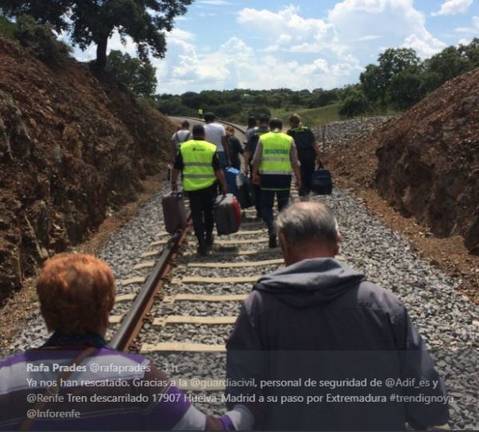 Viajeros a pie por los campos extremeños, traslados en autobús, goteras, impuntualidad, descarrilamientos, catenarias bloqueadas, privilegios de paso y cruce, desprendimientos y piedras en las vías, rebaños arrollados… hasta incendios. Un rosario de problemas (la mayoría retrasos) ocupan un día y otro las redes sociales y los medios de incidencias en los trenes que unen Huelva con Extremadura, Madrid y Sevilla. Incidentes que ponen en un brete la puntualidad, la solvencia y la seriedad del servicio que Renfe y Adif, el Administrador de Infraestructuras Ferroviarias, prestan a la provincia de Huelva.