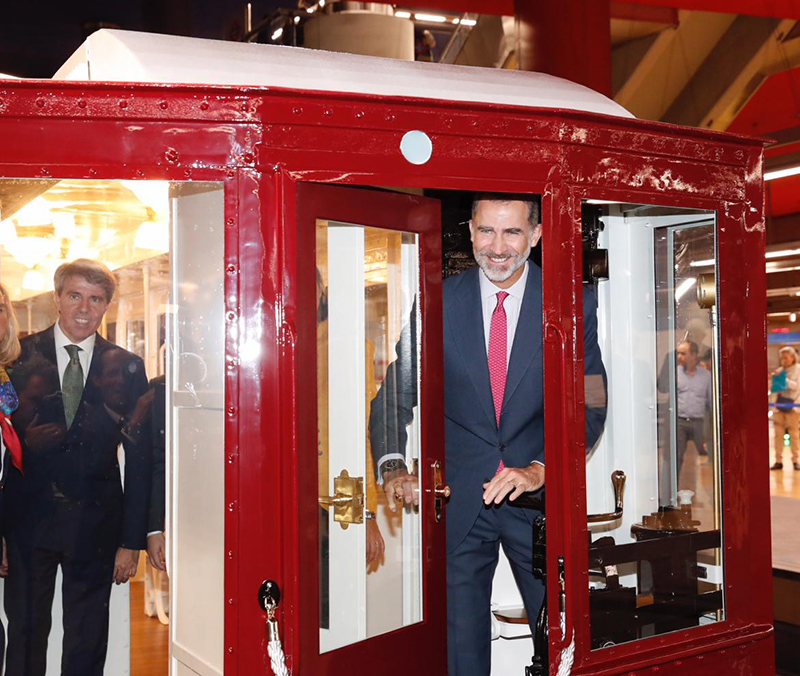 Antes de la inauguración de la exposición, Su Majestad el Rey y el presidente de la Comunidad de Madrid han realizado un recorrido en tren desde la estación de Sol a la de Chamartín, similar al que Alfonso XIII realizó en 1919 durante el acto de inauguración del suburbano.