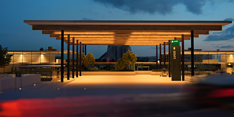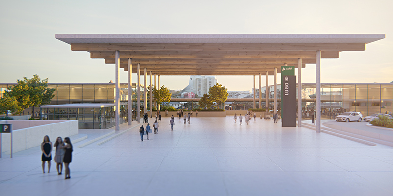 - Actuaciones urbanas (4,83 millones de euros): El ámbito en el que se desarrollarán abarca 12.350 m2. Incluye zonas verdes (1.300 m2), gran plaza intermodal con cubierta de 1.500 m2, urbanización del entorno y viales exteriores.