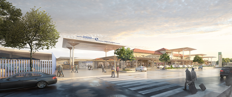 La nueva estación de ferrocarril de Orense, que contempla inversiones por un importe total de 146,1 millones de euros, está integrada dentro de una estrategia global urbana en un espacio intermodal, donde se situará también la estación de autobuses, a cargo de la Xunta de Galicia.
