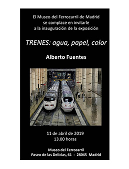 El Museo del Ferrocarril de Madrid acoge en la Sala de Exposiciones “Coche 3000” la muestra “Trenes: agua, papel, color” con una selección de veintiuna acuarelas de temática ferroviaria en pequeño formato del artista Alberto Fuentes. La exposición se inaugurada ayer 11 de abril podrá visitarse hasta el 29 de mayo.