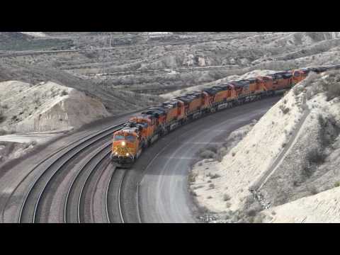 BNSF TRAINS PASSING EACH OTHER ON THE CAJON PASS