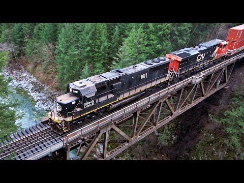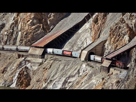 MASSIVE TRAINS IN THURU TUNNELS AND UNDER ROCK SHEDS IN THE THOMPSON CANYON