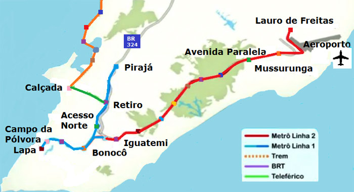 La nueva red de metro bahiana se inscribe en un amplio programa integrado de transporte que enlazará con el aeropuerto internacional Luiz Eduardo Magalhães y tendrá puntos de intercambio modal con otras redes de transporte.