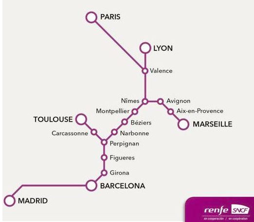 Para llegar a España en alta velocidad más fácilmente durante las vacaciones de verano, la fórmula “Renfe-SNCF en cooperación” ofrecerá una frecuencia diaria más del tren TGV desde Francia a España. Además, dentro de su activa política de descuentos, la compañía ferroviaria francesa ofrecerá cada miércoles del mes de junio ofertas exclusivas.(Ver horarios París-Madrid-París)