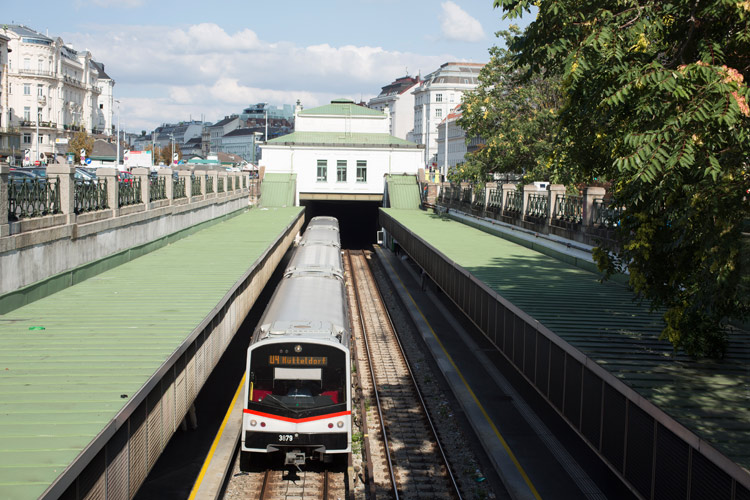 Línea Verde A diferencia de las otras líneas de la red de metro vienesa, en la U4 más conocida como Línea Verde, no existe la posibilidad de cambiar de vía coches o trenes, ni existen cruces ni medios técnicos para realizar esos cortes de trenes. Así un tren averiado podría bloquear completamente una de las dos vías.