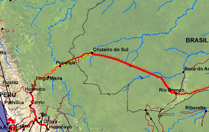 Brasil ya trabaja para mejorar la logística de los productos de la zona Centro-Oeste de país, preparando la licitación de la construcción y concesión de los distintos tramos que integran la línea Brasil-Perú, desde Porto Velho a los puertos del Pacífico, pasando por Rio Branco y Cruzeiro do Sul antes de entrar en territorio peruano (Ver noticia).